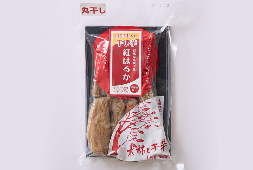 糖度が高く紅はるかで作る当農園の「木枯らし芋(干し芋)」は、まるで芋ようかんのような、ねっとりとした甘みが特徴の人気商品です。原料のさつまいもは、天然の肥料を取り入れながら、風味豊かに育てています。